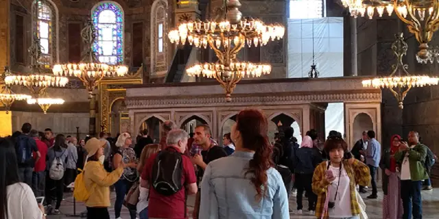 Все мы знаем, что Стамбул когда-то был Констонтинополем и, не смотря на то, что сегодня основная религии там - это мусульманство, именно в этом городе зародилось православие, и именно отсюда оно пришло на Русь. Прямо на берегу Босфора, стоит, поистине, огромный Собор Святой Софии. Именно сюда пришла делегация князя Владимира, и именно в этом месте было принято решение о принятии христианской веры. В истории написано, что войдя в этот храм, делегация князя была, просто, шокирована роскошью и блеском золота в убранстве Собора Святой Софии. Когда мы зашли в храм, то сразу поняли о чём шла речь. По сохранившимся фрескам видно, что всё было из золота. Стены, потолок, мозаики, иконы. При попадании солнечного света храм светится и блестит самым ярким светом, каким только возможно.