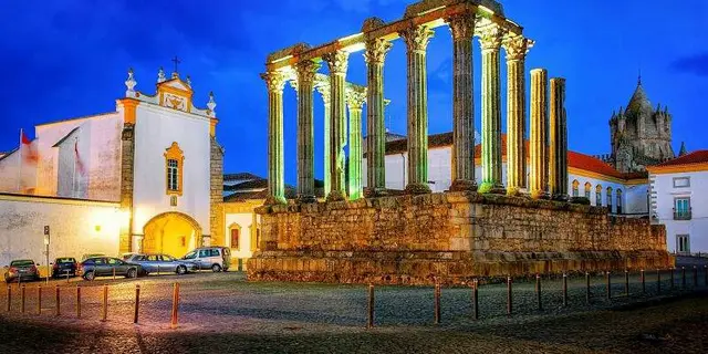 Храм Дианы - самая известная достопримечательность Эворы. Этот римский храм был построен во 2-м или 3-м веке нашей эры и является самым сохранившимся античным сооружением на территории Португалии. Четырнадцать колонн, увенчанных коринфскими капителями, всё ещё твердо стоят на гранитном основании. В Средневековье храм использовался как виселица в период расцвета инквизиции, затем был превращен в бойню. Под охрану этот древний памятник был взят только в 19 столетии.