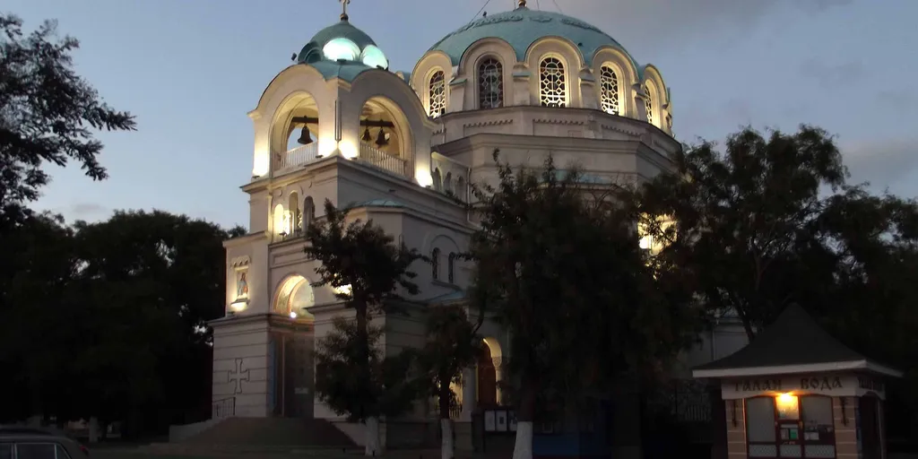 Свято-Николаевский собор - главный храм Евпатории, построенный в конце 20 века в традиционном византийском стиле. Здание церкви имеет форму восьмиугольника и большой 18-метровый купол.