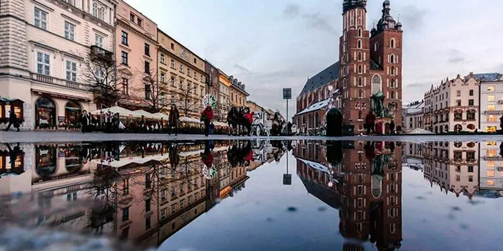 Главная площадь Кракова и одна из самых больших и старых рыночных площадей Европы - Главный рынок и готический Мариацкий костел. Фото - @ulicki.pl