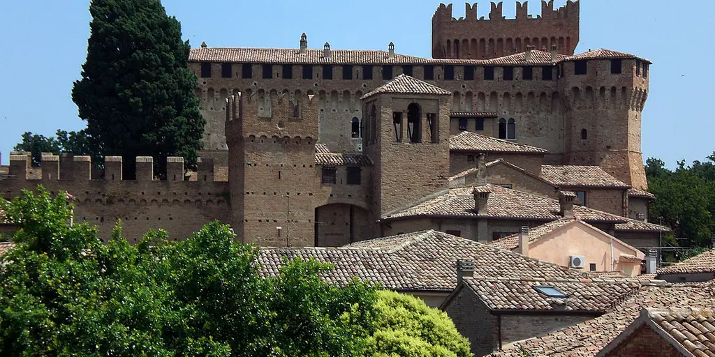 Замок Малатестиана считается жемчужиной средневековой оборонительной итальянской архитектуры. Эта массивная крепость, основанная в 12 веке, расположена на вершине холма в живописной местности между предгорьями Апеннинских гор и Адриатическим морем. К замку примыкает историческая деревня, до сих пор окруженная внешними стенами.