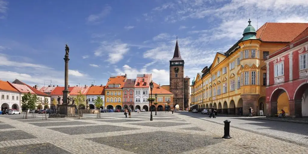 Вальдштейнская площадь - центральная площадь исторического центра Йичина. Площадь окруженауникальным ансамблем исторических аркадных зданий. Главные достопримечательности площади - фонтан Коронации, марианская колонна и фонтан со статуей Амфитрита.