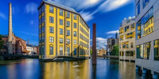 Industrilandskapet (старый промышленный район) — бывшие фабрики и складские помещения, построенные между 1850 и 1920 годами. Сейчас их занимают культурные центры, закусочные и рестораны, университет, художественная школа и т.д. Это атмосферное место для пеших прогулок с симпатичными мостиками над водой и большой плотиной, которая стала декоративным водопадом.