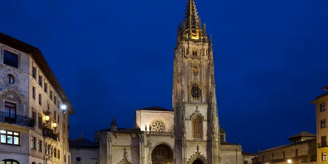 Кафедральный собор Сан-Сальвадор - главная достопримечательность Овьедо и одна из самых впечатляющих церквей Испании. Собор, построенный преимущественно в стиле готики, был возведен между 14 и 16 веками на месте древней церкви 8 столетия, которая была основана королём Астурии Альфонсо II. Нынешнее здание начали возводить в 14 веке. Высокая 82-метровая башня, которая является самой яркой особенностью собора, была построена в 15 веке и увенчана красивым готическим шпилем.