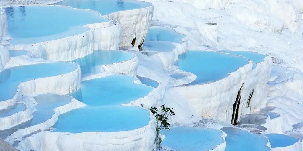 Главной достопримечательностью Памуккале являются белоснежные травертины и террасные ванны с бирюзовой водой. Также здесь можно посмотреть на внушительные развалины древнего Иераполиса, который является одним из старейших в мире курортов.