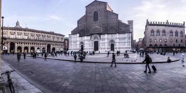Базилика Сан-Петронио — главная достопримечательность пьяцца Маджоре и самый важный сакральный памятник Болоньи. Строительство этой огромной церкви в стиле итальянской готики было начато в 14 веке, но так и не было полностью завершено. Это особенно заметно при взгляде на фасад: нижняя часть выполнена из белого и красного мрамора, а верхняя часть — просто кирпичная. Базилика имеет красивый интерьер, включающий 22 часовни и украшенный великолепными произведения искусства.