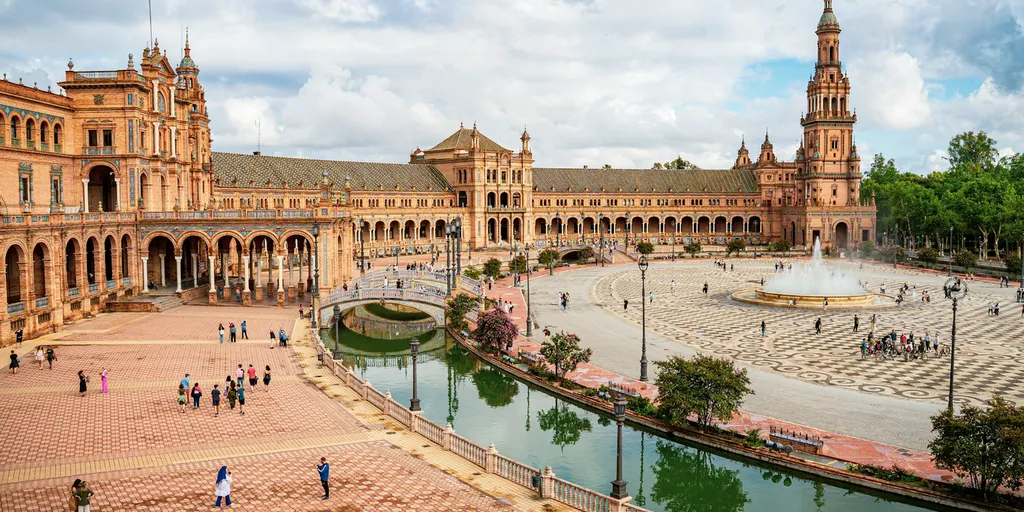 Площадь Испании - одна из самых впечатляющих площадей Севильи. Имеет форму эллипса, диаметр 200 м и площадь около 50 000 квадратных метров. В её архитектуре выделяется огромное полукруглое здание эпохи Возрождения с балюстрадными балконами. Также на площади расположен монументальный фонтан. Изюминкой площади является канал. Из-за него это место часто называют севильской Венецией. Здесь же расположен Парк-де-Мария-Луиза.
