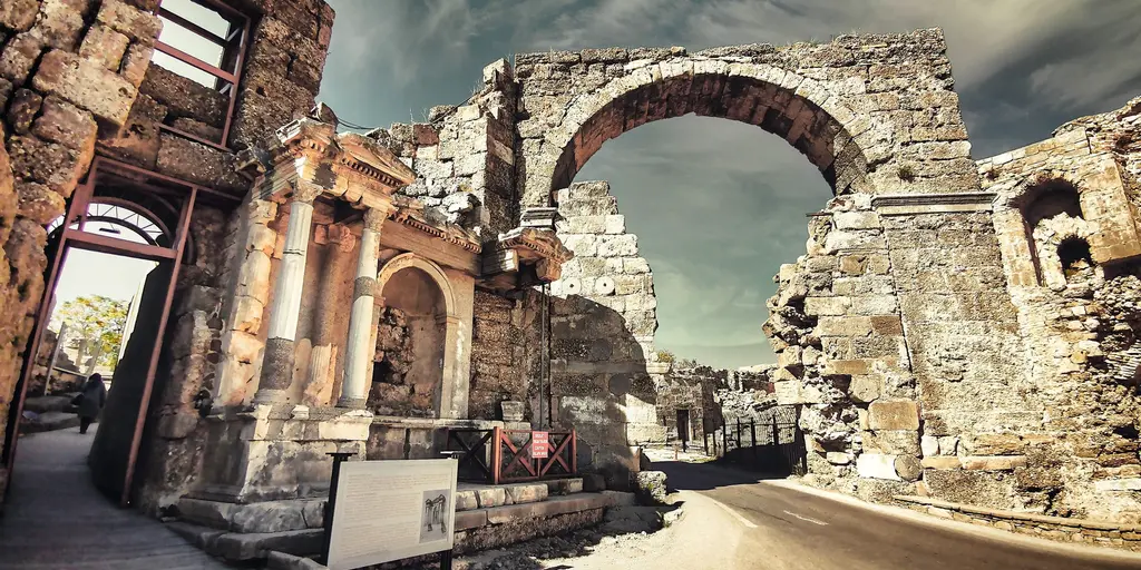 Здесь обнаружен большой банный комплекс, хорошо сохранившаяся агора с уцелевшими кладовыми, колоннадами и магазинами, церковь византийской эпохи, небольшой одеон с мозаикой Орфея. По пути сюда можно увидеть римский акведук, который раньше снабжал водой древний Сиде, а также полюбоваться водопадами на реке Манавгат.
