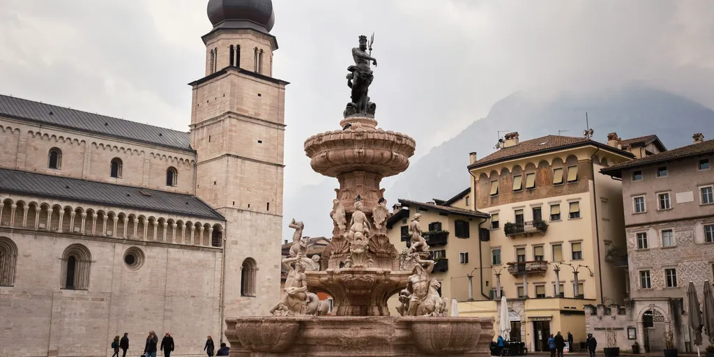 Площадь Дуомо — это сердце Тренто и главное место, с которого стоит начинать знакомство с городом. Именно здесь лучше всего чувствуется особая атмосфера Тренто: с одной стороны — строгий романско-готический собор Сан-Виджилио, с другой — дворцы с расписными фасадами, аркадами и окнами, в которых легко угадывается североитальянская и центральноевропейская традиция. Центр площади украшает фонтан Нептуна, ставший одним из главных символов города.